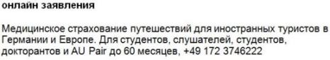 Travel health insurance for foreign visitors in Germany and Europe. For language students, trainees, students, doctoral candidates and AU-pairs up to 60 months, Until the age of 75 years +49 172 / 3 74 62 22